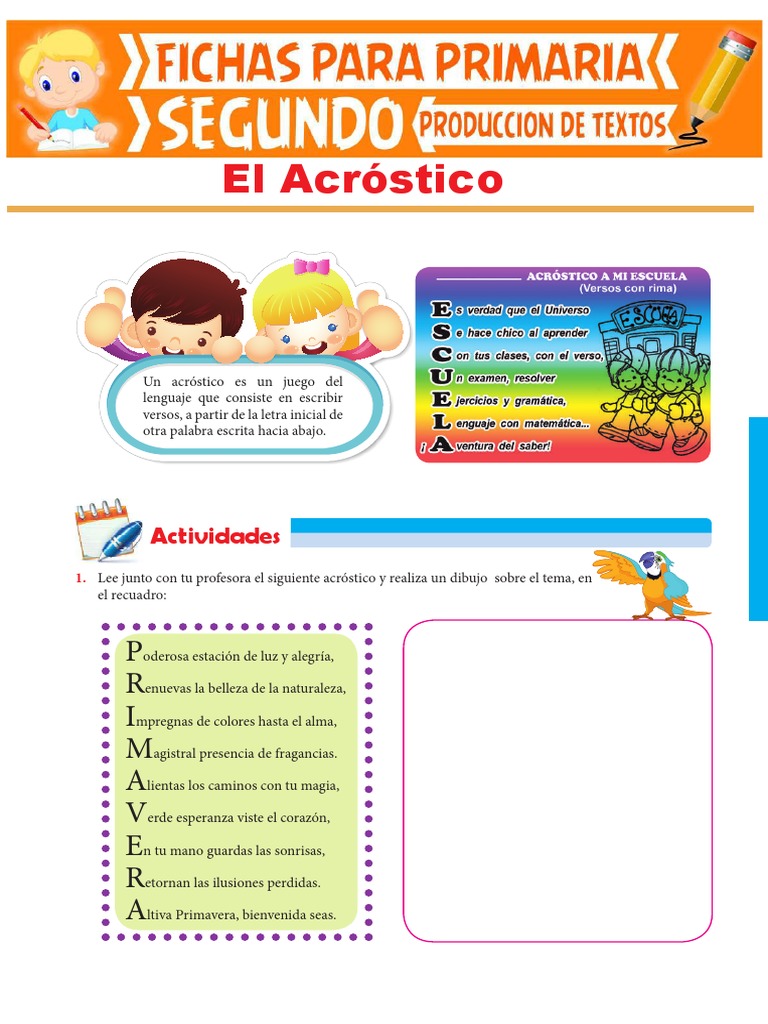 El Acrostico Para Segundo Grado De Primaria Pdf